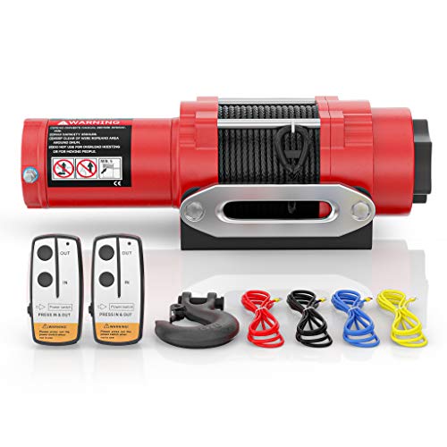 Exclusive Discount 70% Price BIGTUR 12V 4500lb Electric Winch Towing Synthetic Rope Winch Off-Road Recovery with Wireless Remote Control IP67 Waterproof Winch for SUV, Truck, ATV, UTV (H-Model, Red)